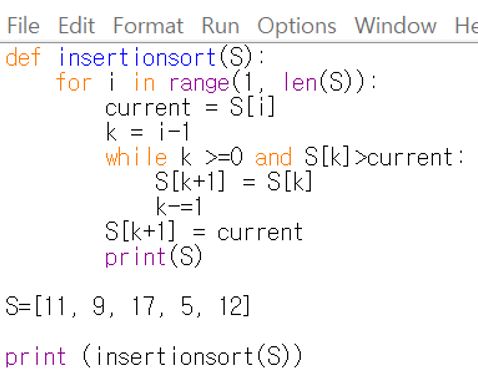 다음은 삽입정렬(Insertion Sort) 알고리즘이다.